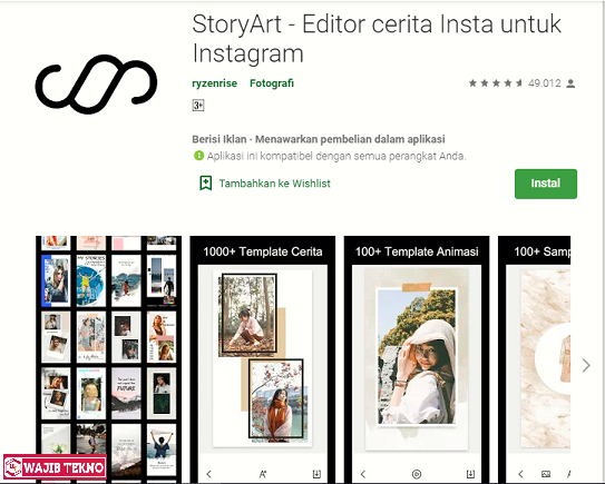 Aplikasi ini adalah aplikasi editor untuk cerita  instagram. Di aplikasi ini kamu akan banyak mendapatkan banyak  template yang bisa kamu gunakan anmun ada beberapa template yang harus kamu bayar dulu sebelum kamu gunakan.