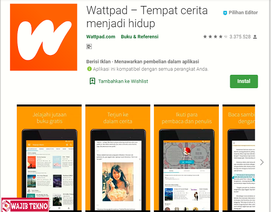 Kalo wattpad ini salah satu aplikasi favorite ku. Karena gak usah beli buku cerita kita bisa gunakan aplikas ini memungkinkan kita untuk membaca cerita secara online atupun offline.jadi biar kamu gak bosan kalo ada kelas kosong kamu bisa sempatin baca atau jam istirahat, Di aplikasi ini banyak banget genre cerita yang bisa kamu baca mulai dari cerita horor, Chicklit, Fantasi Fiksi remaja, Humor, dan banyak lagi.