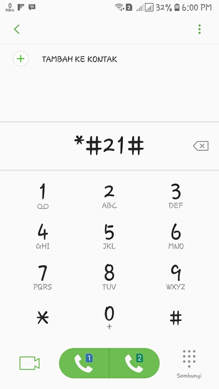 ketikan *#21# pada menu dial di phone anda, dan paggil dengan sim card mana yang hendak anda cek apakah disadap atau tidak , Makahasilnya seperti gambar berikut