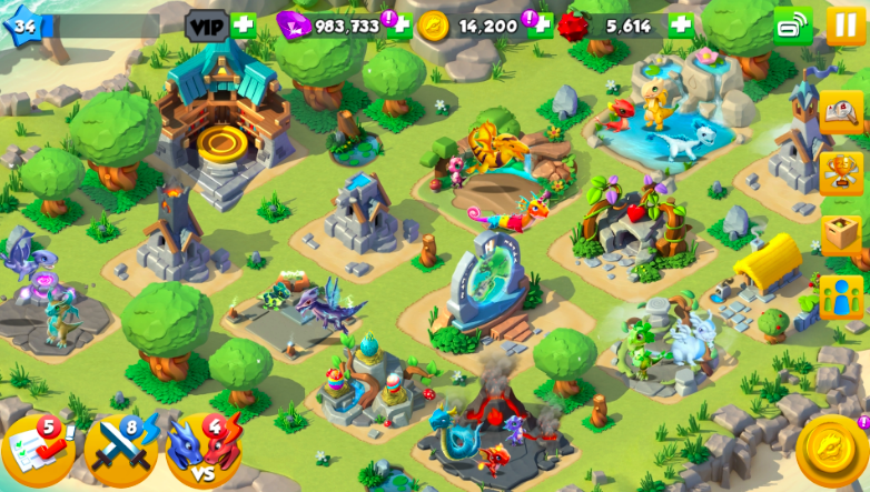 anda memerlukan habitat khusus untuk setiap jenis naga. Misalnya, naga api dikembangbiakkan di habitat yang berbeda dengan naga udara. Untuk meningkatkan level naga, Anda harus memberinya makanan yang dihasilkan pulau Anda sendiri, dan untuk menciptakan spesies naga baru Anda harus mengombinasikan jenis naga yang berbeda.