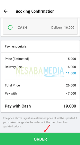 5. Kemudian anda cek pada bagian total biaya pada insformasi orderan