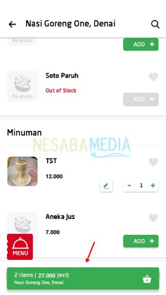 adan dapat menambah lagi atau juga dapat mengurangi pesanan jika anda tidak sengaja memilih makan tersebut