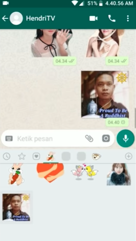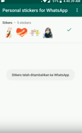 10. Nah sekarang kita sudah dapat melihat gambar stiker yang sudah kita tambahkan tadi menggunakan aplikasi Personal Sticker For Whatsapp