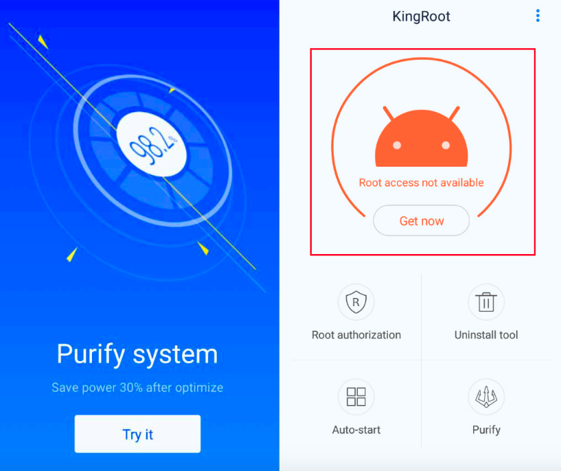 5. Jika aplikasinya sudah terbuka lalu pilih “Try it” untuk bisa masuk ke menu root dan pilih lagi “Get now” untuk memulai proses rooting.