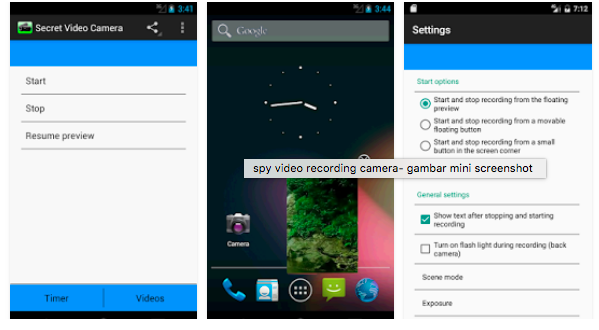 karena aplikasi ini dapat bersembunyi di balik sistem belakang layar, dengan fitur hidden camera anda dapat mengetahui snapshot seseorang melalui aktifitas apa saja yang dilakukannya di hp android.