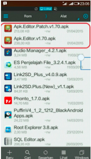 Disitu terdapt 2 apk, yaitu Apk.editor.path.V1.70 dan apk.editorV1.70 .apk nah cara untuk mengedit aplikasi android yang ingin kita edit langkah pertama silakan buka aplikasi editor nya terlebih dahulu,