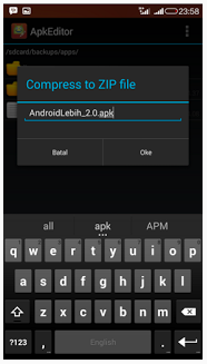 setelah selsai “rename apliaksi nya atau ganti nama” smisal tadi nama nya “andoridlebih.zip” ganti menjadi androidlebih.apk