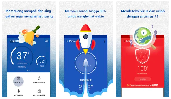 Aplikasi yang satu ini menjadi salah satu aplikasi Android yang wajib dimiliki oleh pengguna smartphone android. Fungsi Clean Master ini mampu membersihkan berbagai berkas sampah yang membuat smartphone Anda menjadi lemot dan lelet seperti keong. Sehingga performa perangkat Android Anda akan lebih enteng dan berjalan normal kembali.