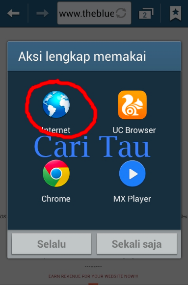 Biasanya muncul poup seperti gambar di atas, silahkan aksi mana yang ingin sobat jalankan? menurut penulis karna kita sedang menggunakan Browser Internet jadi lebih baik kita pilih Internet ikon bola dunia yang saya kasih bunder merah. klik ikon Bola Dunia terus klik