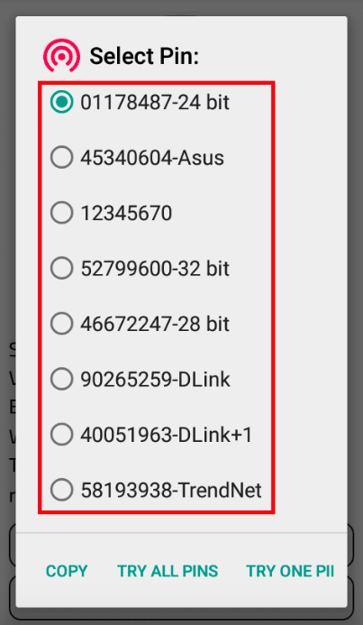 - Selanjutnya anda akan di beri beberapa pasword atau pin, silakan anda pilih salah satu dari pin yang sudah di sediankan seperti gambar di bawah ini