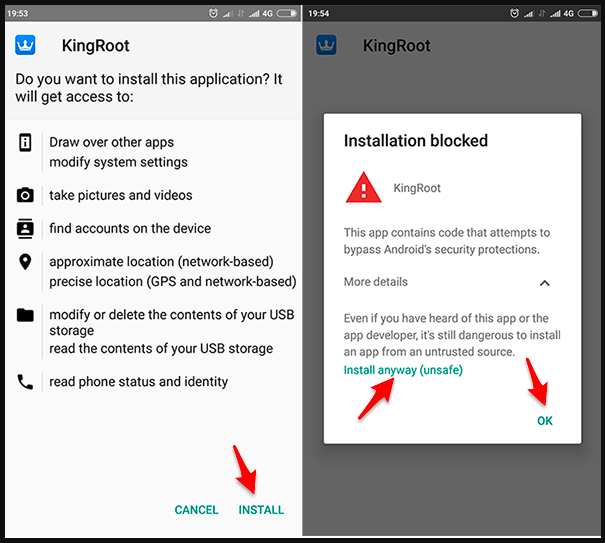 Sebelum menginstal aplikasi Kingroot, konfigurasikan HP Anda untuk mengizinkan instalasi aplikasi pihak ketiga yang tidak diketahui (sumber yang tidak diketahui) pada pengaturan di ponsel anda