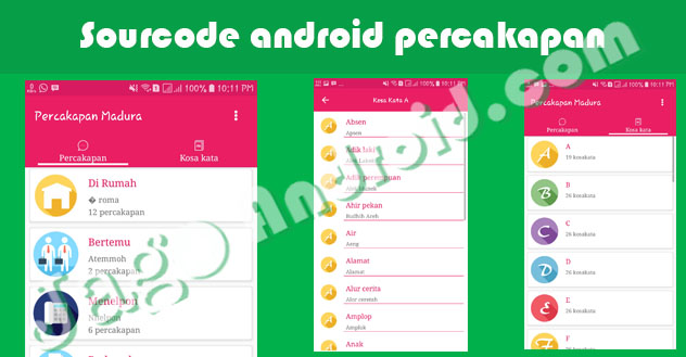 Kira kira seperti itu tampilan aplikasi dari sourcode aplikasi percakapan di android, Download free sourcode percakapan for android studio or eclipse